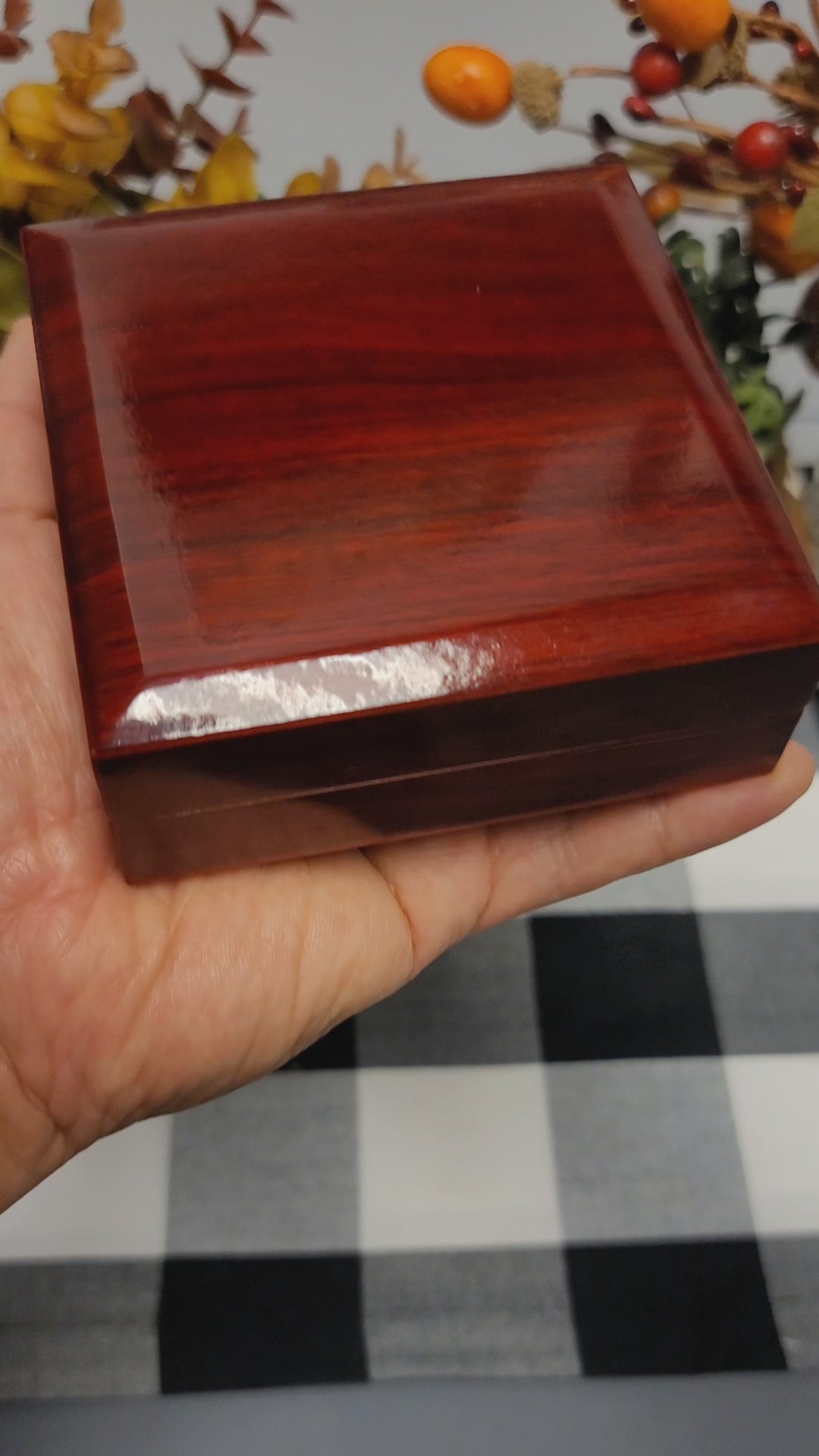 Your piece is lovingly packaged in a complimentary soft touch box for easy gifting. Elevate your presentation by upgrading to the mahogany style luxury box, which features a brilliant LED spotlight.