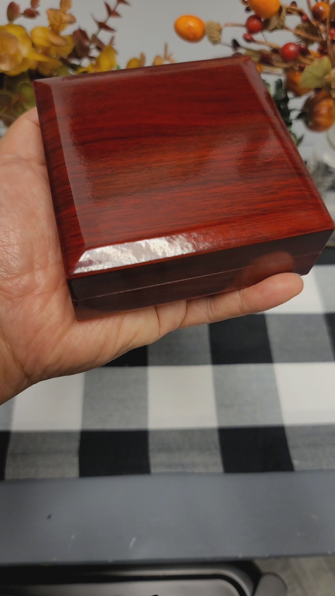 Your piece is lovingly packaged in a complimentary soft touch box for easy gifting. Elevate your presentation by upgrading to the mahogany style luxury box, which features a brilliant LED spotlight.