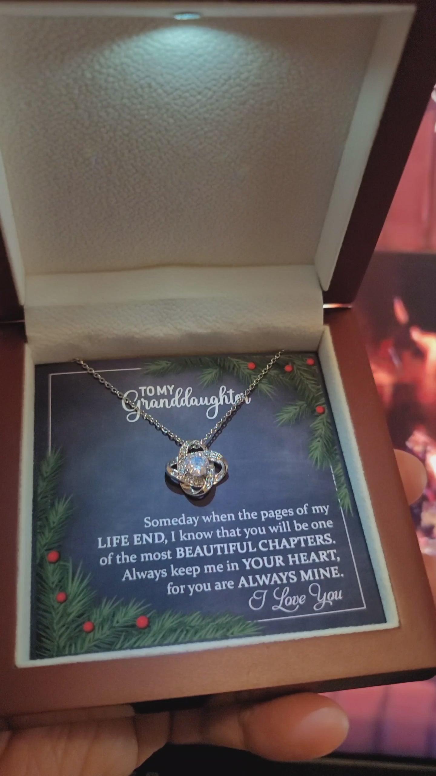 To my Grand Daughter on Christmas~ I love you so much ~ Love Knot Necklace Granddaughter
