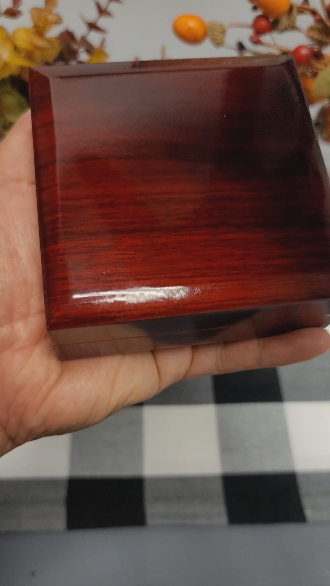 Your piece is lovingly packaged in a complimentary soft touch box for easy gifting. Elevate your presentation by upgrading to the mahogany style luxury box, which features a brilliant LED spotlight.
